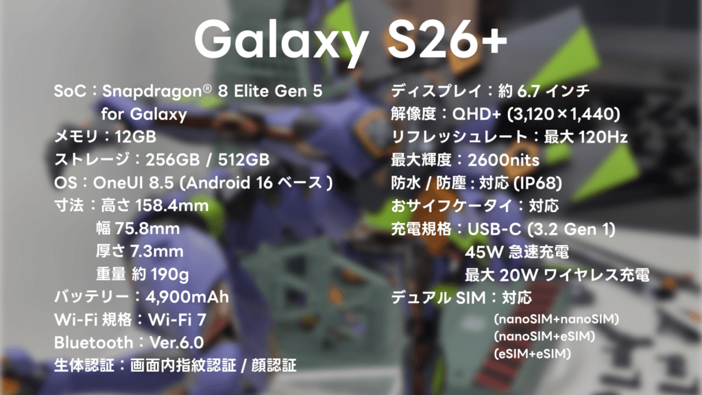 今回はあおとくんのご縁もあり、サムスン電子ジャパン株式会社様より最新スマートフォン『Galaxy S26+』をお借りしました。先日noteにてレビューした『Galaxy S26 Ultra』に続いて2機種目ですね。ありがたい。