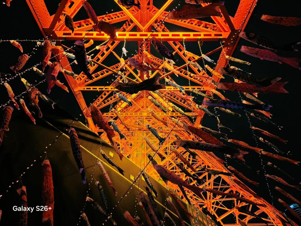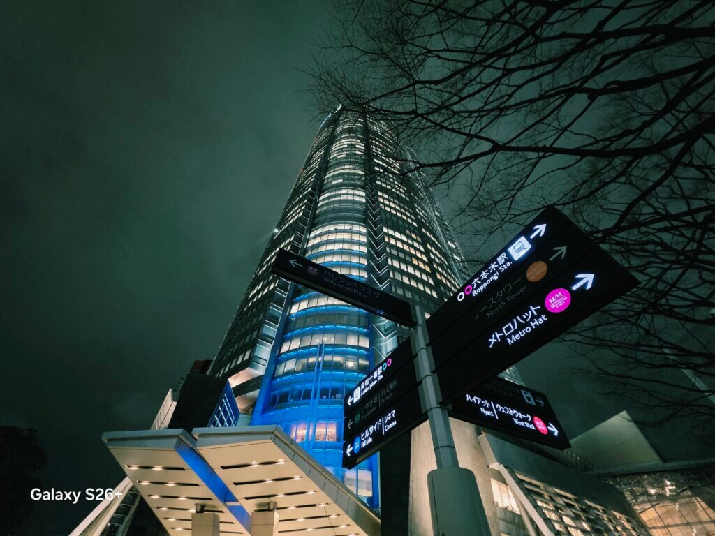 夜景です。上3枚はGalaxy S26 Ultra同様、フィルムフィルター込みで撮影したものです。ノイズも少なく、ディテールも特段問題なさそうですがXiaomiやOPPOなどのカメラスマホと比べてしまうとどうしても可もなく不可もなくといった印象。