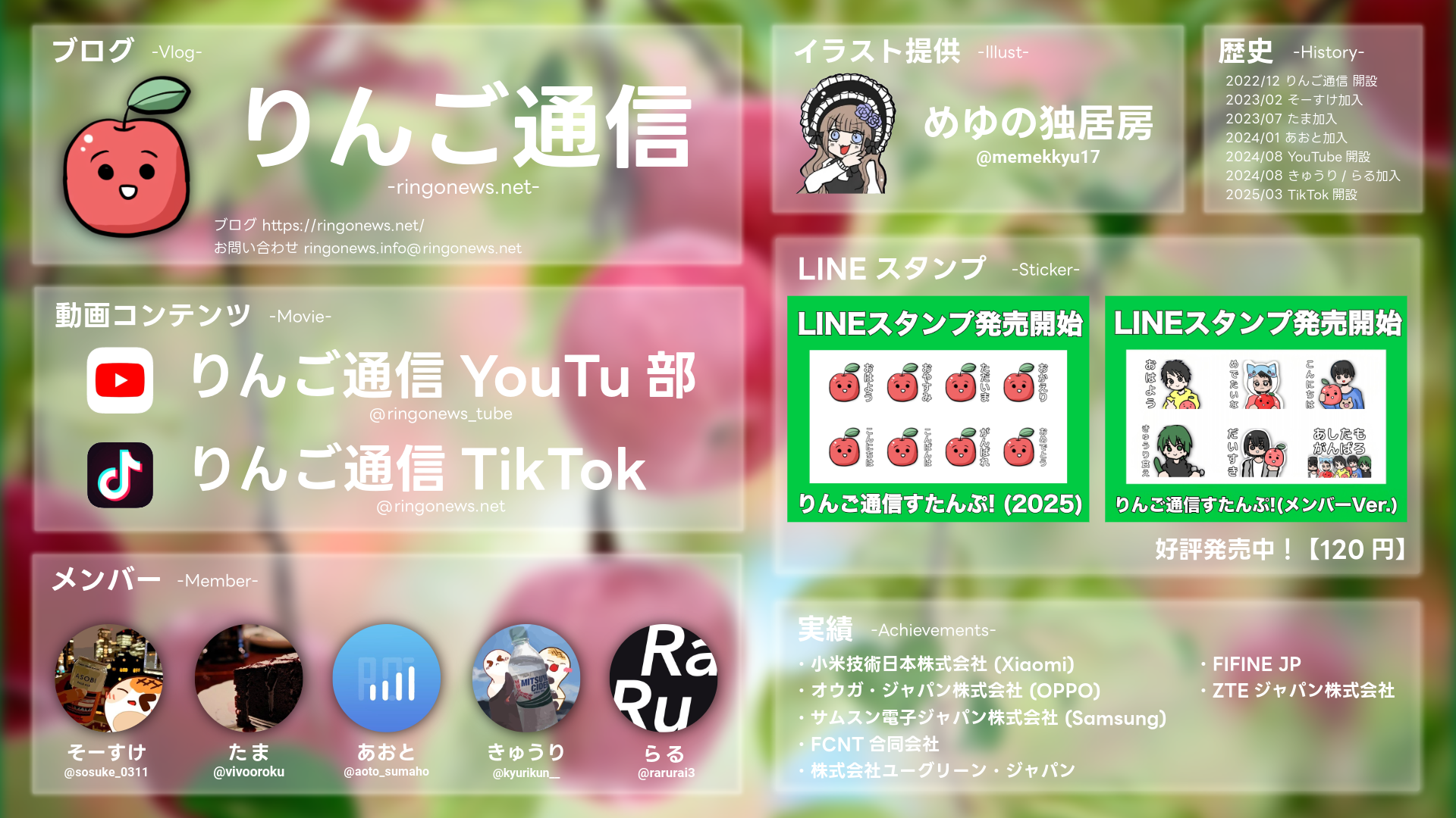 また、ブログ以外の情報発信の場として、2024年8月に『#りんご通信YouTu部(YouTube)』、2025年3月に『りんご通信TikTok(TikTok)』をそれぞれ開設しました。