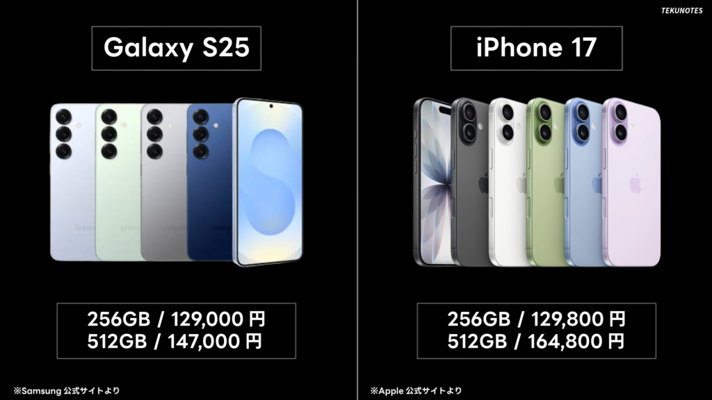 【iPhone 17 & Galaxy S25 比較】シンプルなのに長く使える – 無難な2機種 –