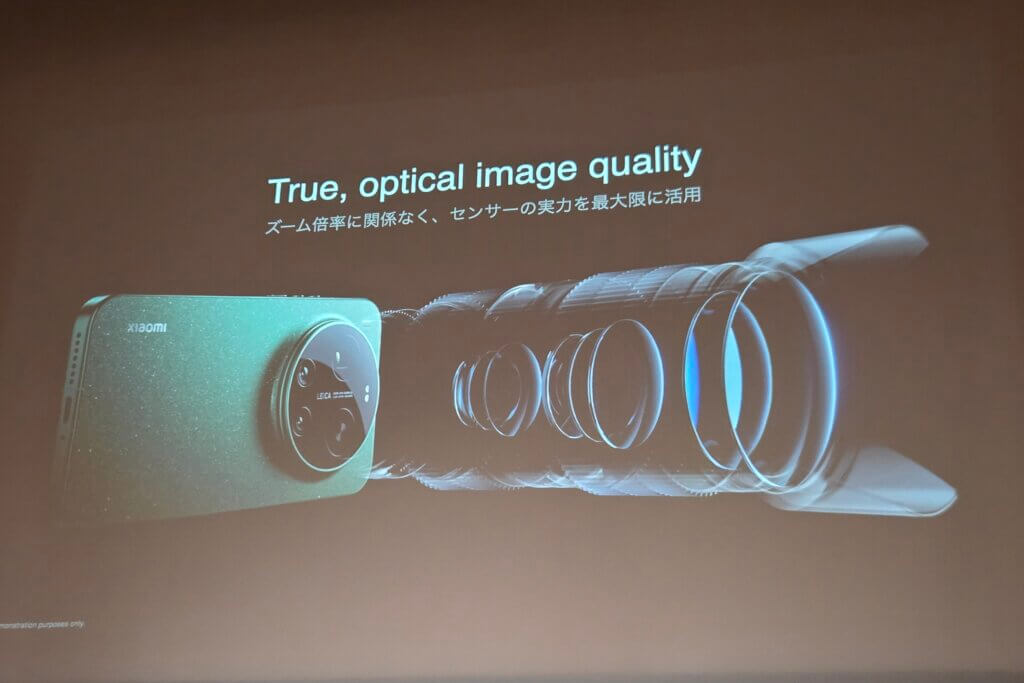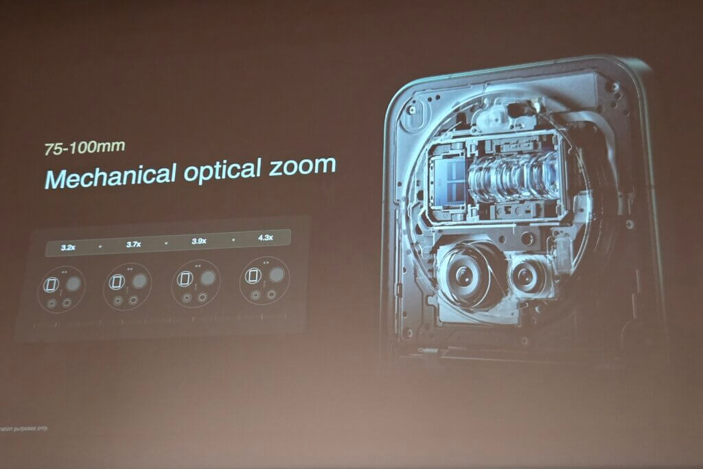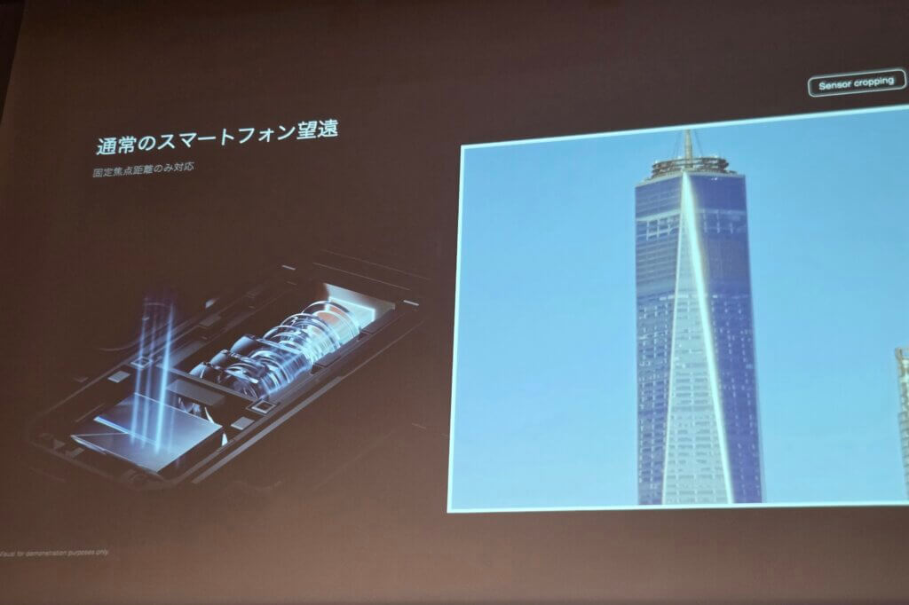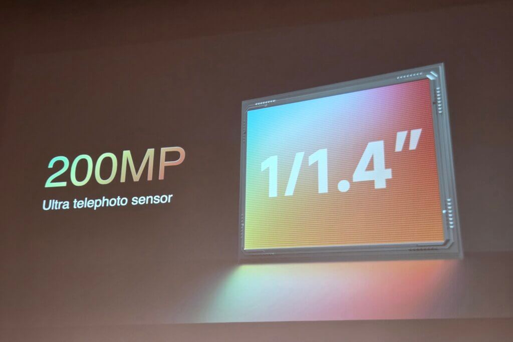続いて、目玉ともいえる2億画素望遠カメラには他社製品よりも圧倒的に大型な1/1.4インチセンサーを採用。そしてもう1つの目玉ともいえるのが、機械式ズームレンズ『Leica APO lens』の採用です。