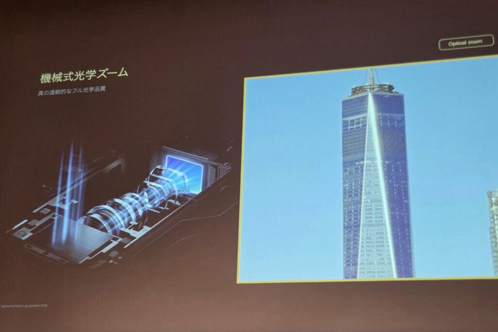 他社製品、日本市場においてはGalaxy S UltraシリーズやXperia 1シリーズなどのハイエンドモデルに搭載されてる望遠カメラに対し、機械式ズームは大きなアドバンテージともいえるでしょう。