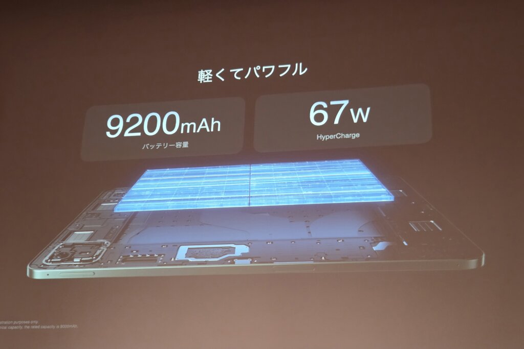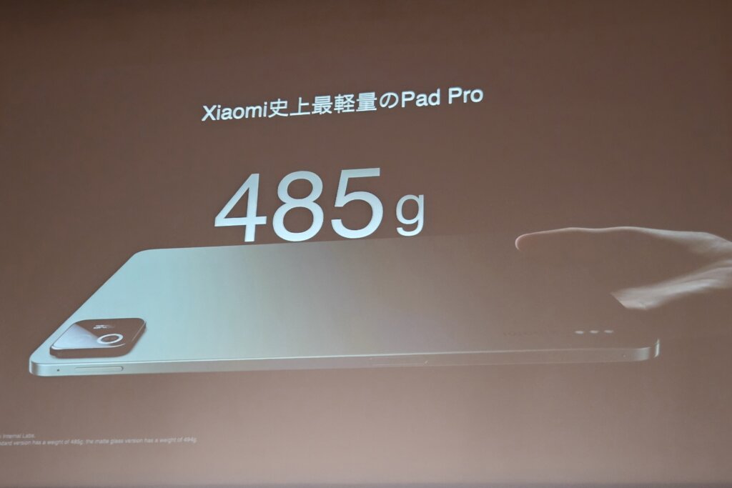 Xiaomi Pad史上最も薄い5mmと、某りんご信者が発狂しそうな薄さに加え、重量は485gと軽量。そんな薄くて軽いタブレットの中にはなんと9,200mAhの大容量バッテリーを備えます。