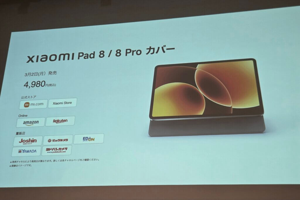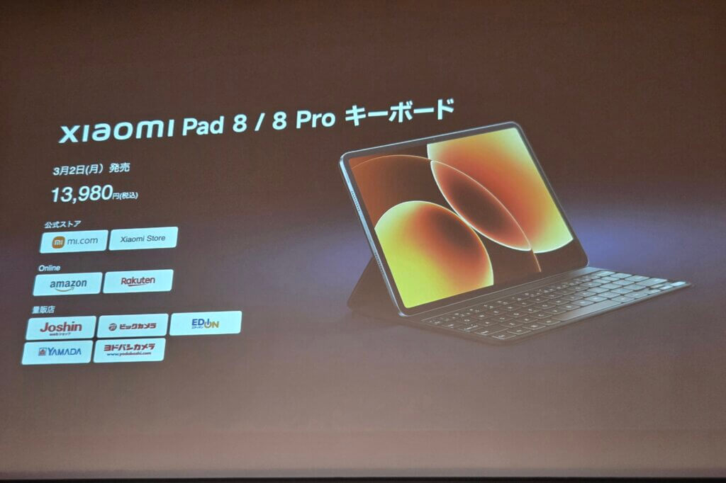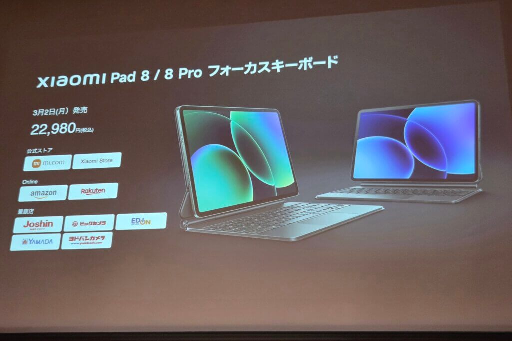 この他に、Xiaomi Pad 8を最大限活用するアイテムとして専用キーボード2種に加え、専用カバー1種とフォーカスペンも発売。