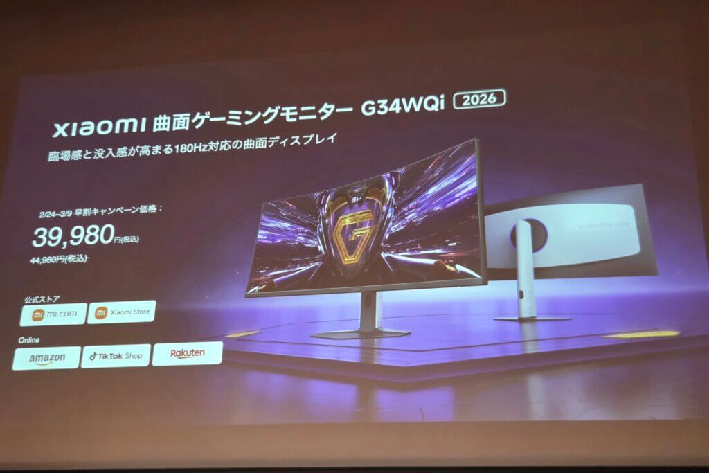 Xiaomi モニター A24i 2026 / Xiaomi 曲面ゲーミングモニター G34WQi 2026